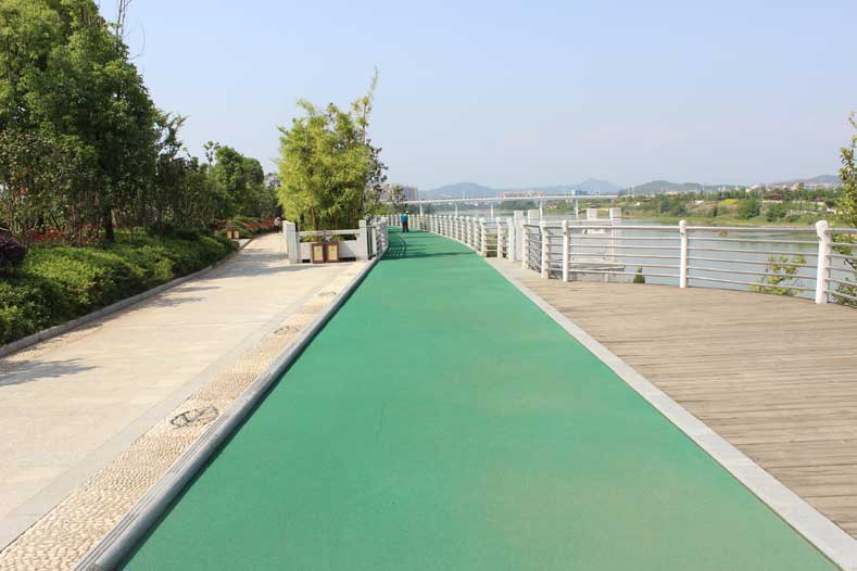 特點五:快速施工。 彩色地坪飾面高分子材料將建筑物及環(huán)境的使用功能要求與裝飾效果結合起來一次完成,因此具有施工簡單、迅速和整體性好的特點。